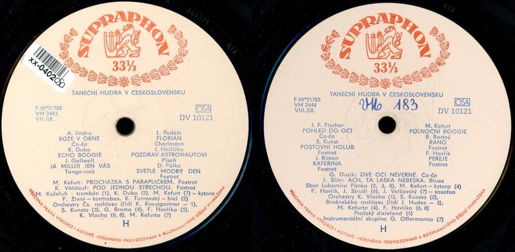 G. Dusík, J. Šlitr, Sbor Lubomíra Pánka, M. Kefurt, F. Havlík, J. Štrudl, J. Velčovský, Orchestry K. Vlacha, S. Kunsta, Brněnského rozhlasu, M. Kefurta, Pražský dixieland