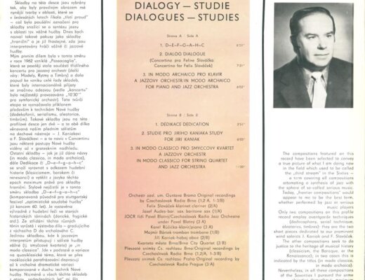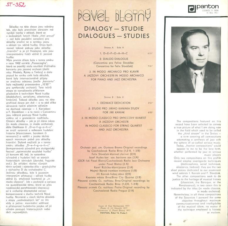 D-E-F-G-A-H-CDialog/Dialogue (Concertino Pro Felixe Slováčka / Concertino For Felix Slováček)In Modo Archaico Pro Klavír A Jazzový Orchestr / In Modo Archaico For Piano And Jazz OrchestraDedikace / DedicationStudie Pro Jiřího Kaniaka / Study For Jiří KaniakIn Modo Classico Pro Smyčcový Kvartet A Jazzový Orchestr / In Modo Classico For String Quartet And Jazz Orchestra
