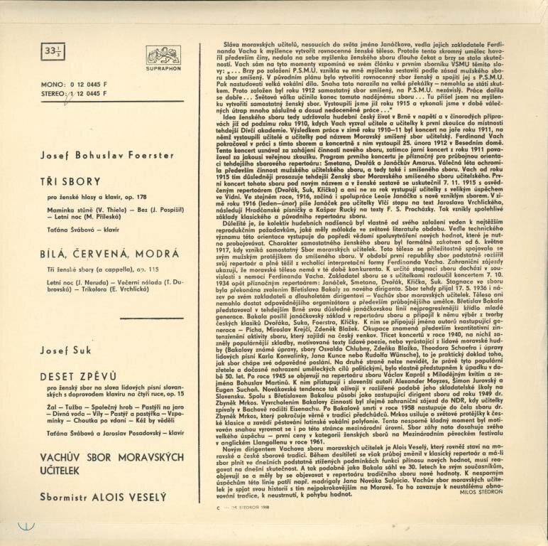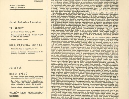 Foerster - Tři sbory, Bílá, červená, modrá, Josef Suk - Deset zpěvů