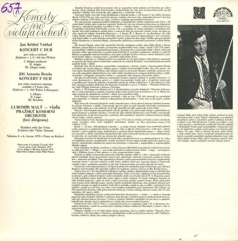 Jan Křtitel Vaňhal, Jiří Antonín Benda - Koncerty pro violu a orchestr