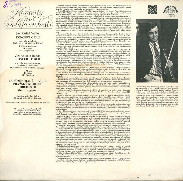 Jan Křtitel Vaňhal, Jiří Antonín Benda - Koncerty pro violu a orchestr
