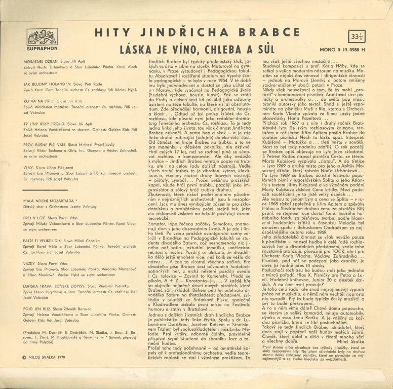 Hity Jindřicha Brabce - Láska je víno, chleba a sůl