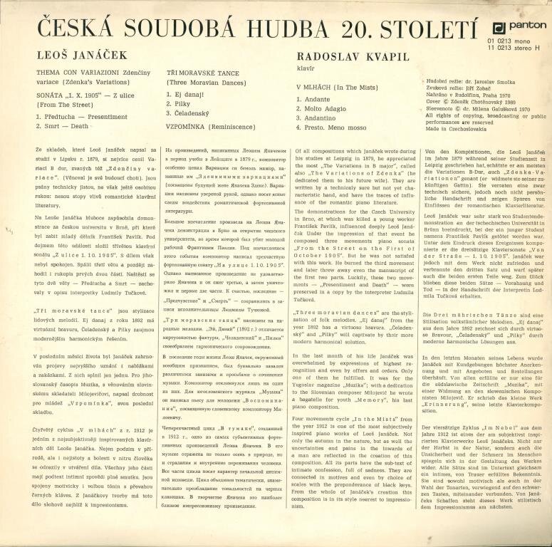 Leoš Janáček - Thema con variazioni, Sonáta, Tři moravské tance, Vzpomínka, V mlhách
