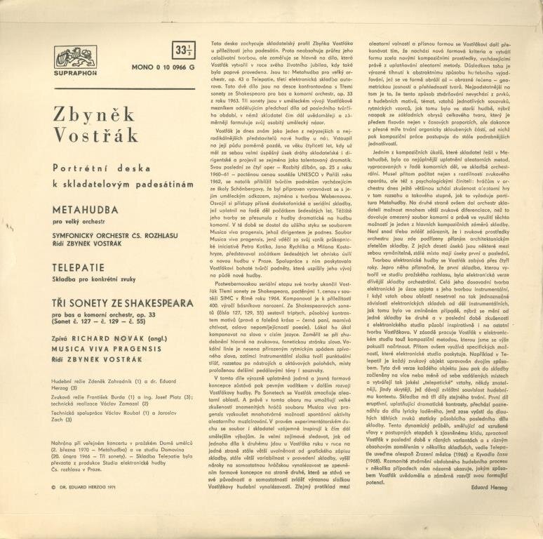 Zbyněk Vostřák - Portrétní deska s skladatelovým padesátinám