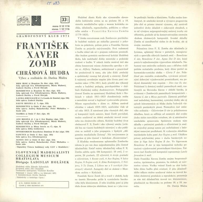 Fantišek Xaver Zomb - Chrámová hudba