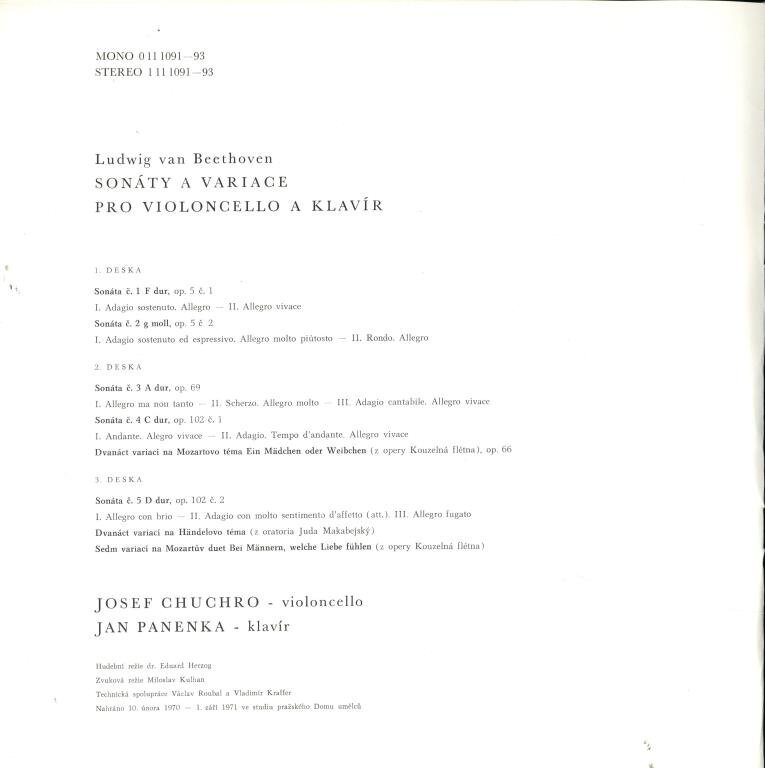 Sonáty a variace pro Violoncello a klavír