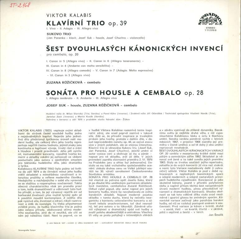Klavírní trio, Šest dvouhlasých kánonických invencí, Sonáta pro housle a cembalo