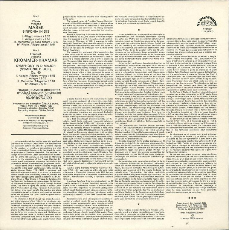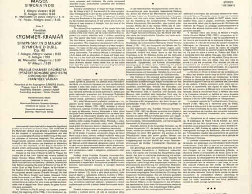 Václav Vincenc Mašek - Sinfonie in dis, František Vincenc Krommer-Kramář - Symphony in D major