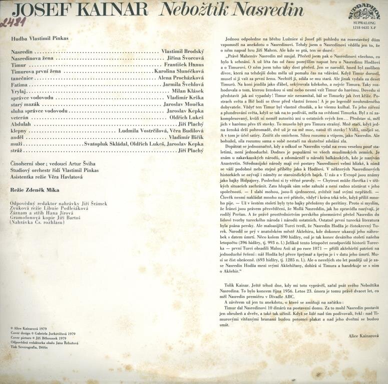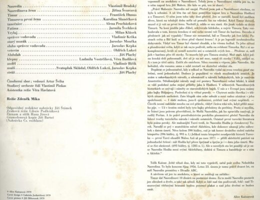 Jiřina Švorcová, František Hanus, Karolina Slunéčková, Alena Procházková, Jarmila Švehlová, Milan Klásek, Vladimír Krška, Jaroslav Moučka, Jaroslav Kepka, Oldřich Lukeš, Jiří Plachý, Ludmila Vostrčilová, Věra Budilová, Vladimír Bičík, Svatopluk Skládal, Studiový orchestr, Činorherní sbor