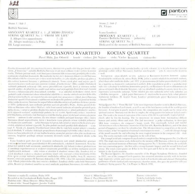 B. Smetana - Smyčcový kvartet č. 1, I. Loudová - Smyčcový kvartet č. 2
