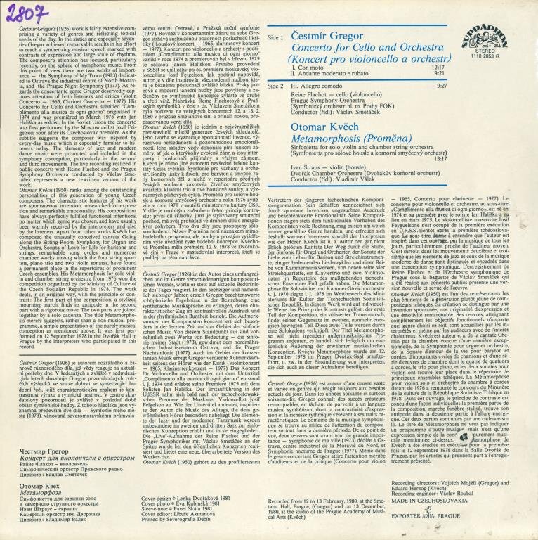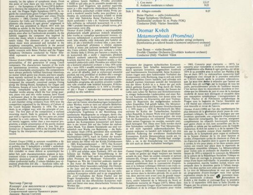 Čestmír Gregor - Cello concerto, Otomar Kvěch - Metamorphosis