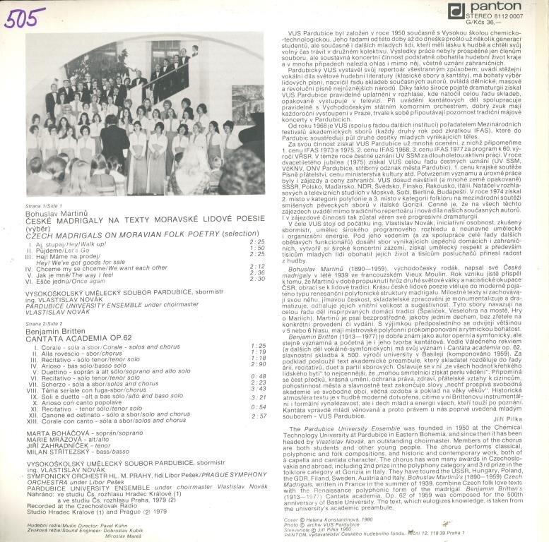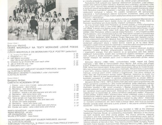 Bohuslav Martinů - České madrigaly, Benjamin Britten - Cantat academica
