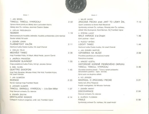 Dechová hudba Česká muzika, František Pošta, Vít Mach, Miloš Petrák, Jaromír Černík, Posádková hudba Praha, Felix Slováček, Miroslav Kriesl, Petr Král, František Kryka, František Rezek, Členové orchestru Čs. rozhlasu, Collegium musicum pragensis a další