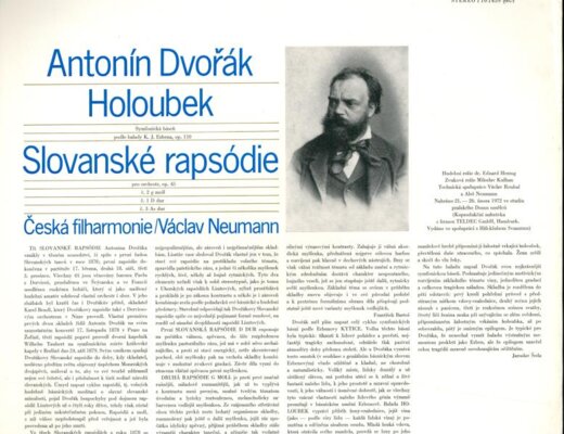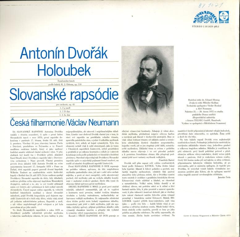 Holoubek, Symfonická Báseň Podle Balady K. J. Erbena, Op. 110 Slovanské Rapsódie Pro Orchestr, Op. 45 C. 2 G Moll C. 1 D Dur C. 3 As Dur
