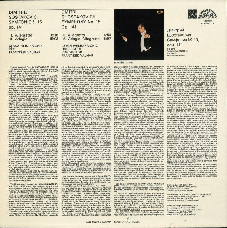 Symphony No. 15, Op. 141I. AllegrettoII. AdagioIII. AllegrettoIV. Adagio. Allegretto