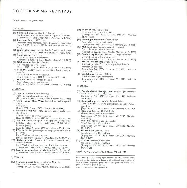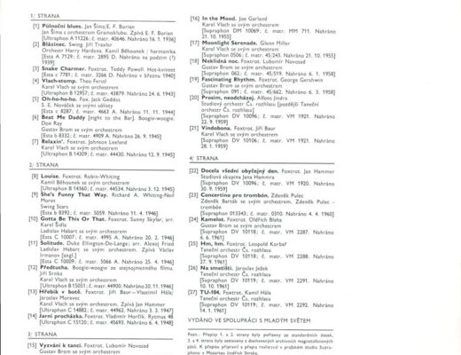 E. F. Burian, Orchestr Harry Hardena, Kamil Běhounek, Karel Vlach se svým orchestrem, S. E. Nováček se svými sólisty, Gustav Brom se svým orchestrem a další