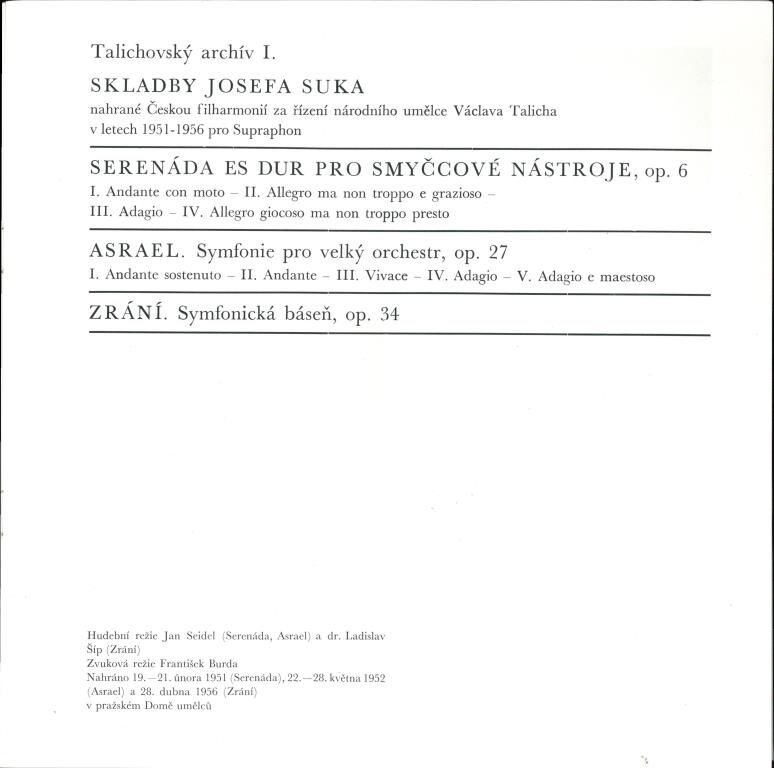 Talichovský archiv I. - Skladby Josefa Suka