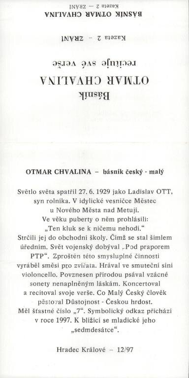 Otmar Chvalina recituje své verše - Zrání