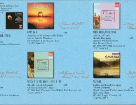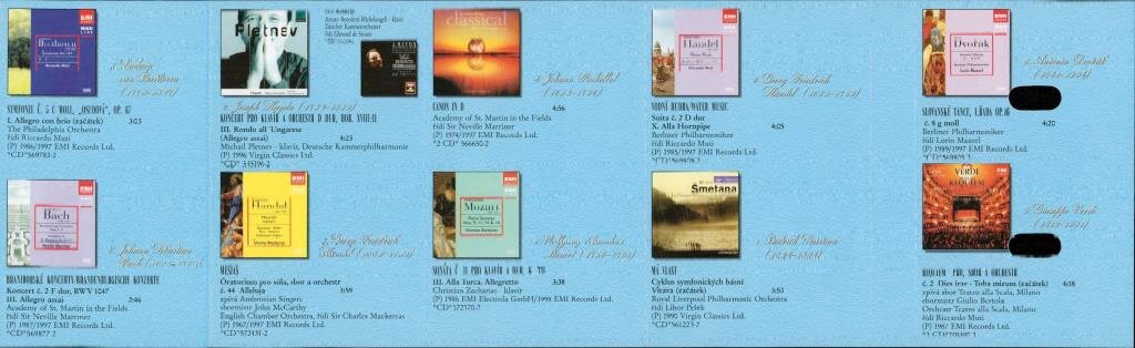A. Vivaldi, W. A. Mozart, T. Albioni, L. van Beethoven, J. S. Bach, J. Haydn, G. F. Händel, J. Pachelbel, G. F. Händel, B. Smetana, A. Dvořák, G. Verdi |