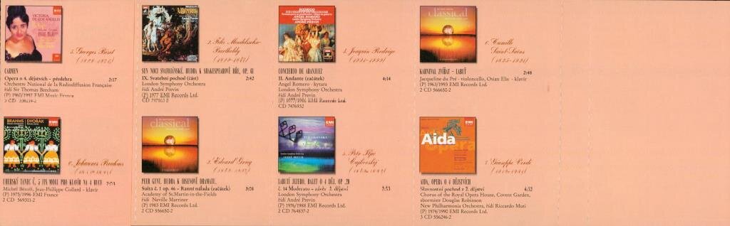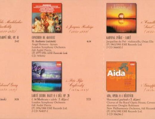 A. Chacaturian, S. Prokofjev, J. S. Bach, G. Bizet, J. Brahms, E. Grieg, J. Rodrigo, P. I. Čajkovskij, C. Saint-Saëns, G. Verdi