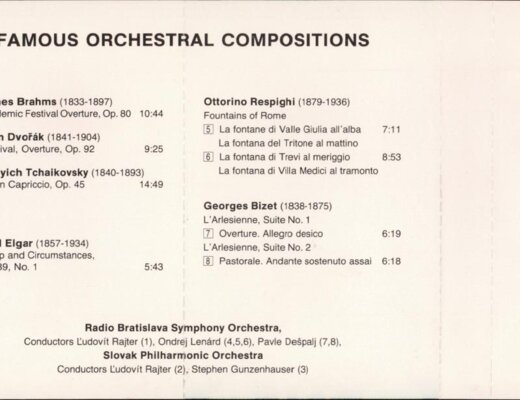 J. Brahms, A. Dvořák, P. I. Tchaikovsky, E. Elgar, O. Respighi, G. Bizet