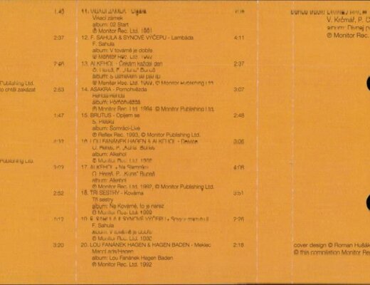 Kabát, Alkehol, Orlík, Tři sestry, Landa, Sahula, Hagen, Visací zámek a další