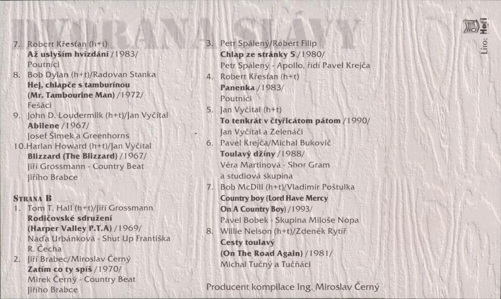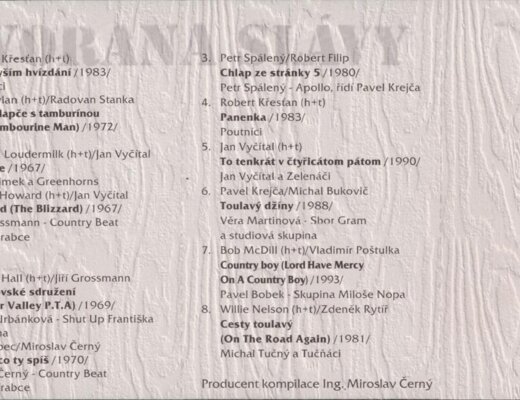 Michal Tučný, Pavel Bobek, Věra Martinová, Petr Spálený, Naďa Urbánková, Poutníci, Karel Kahovec, Fešáci, Greenhorns, Jiří Grossmann, Mirek Černý