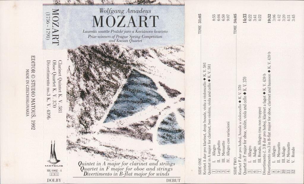 Quintet in A major for clarinet and strings, Quartet in F major for oboe and strings, Divertimento in B-flat major for winds