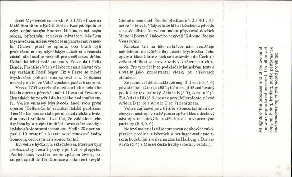 Josef Mysliveček/Árie
