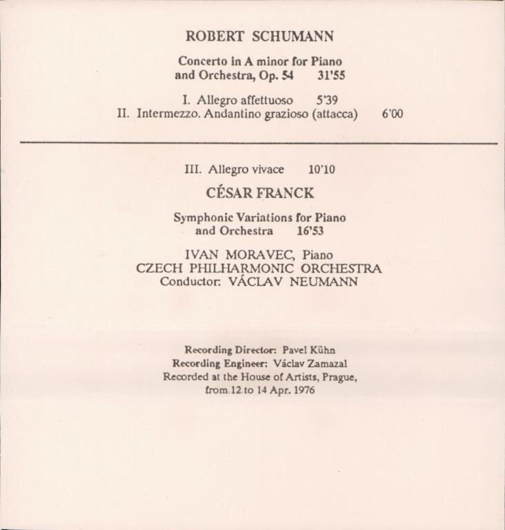 Schumann, Franck, Ivan Moravec, Czech philharmonic orchestra, Václav Neumann