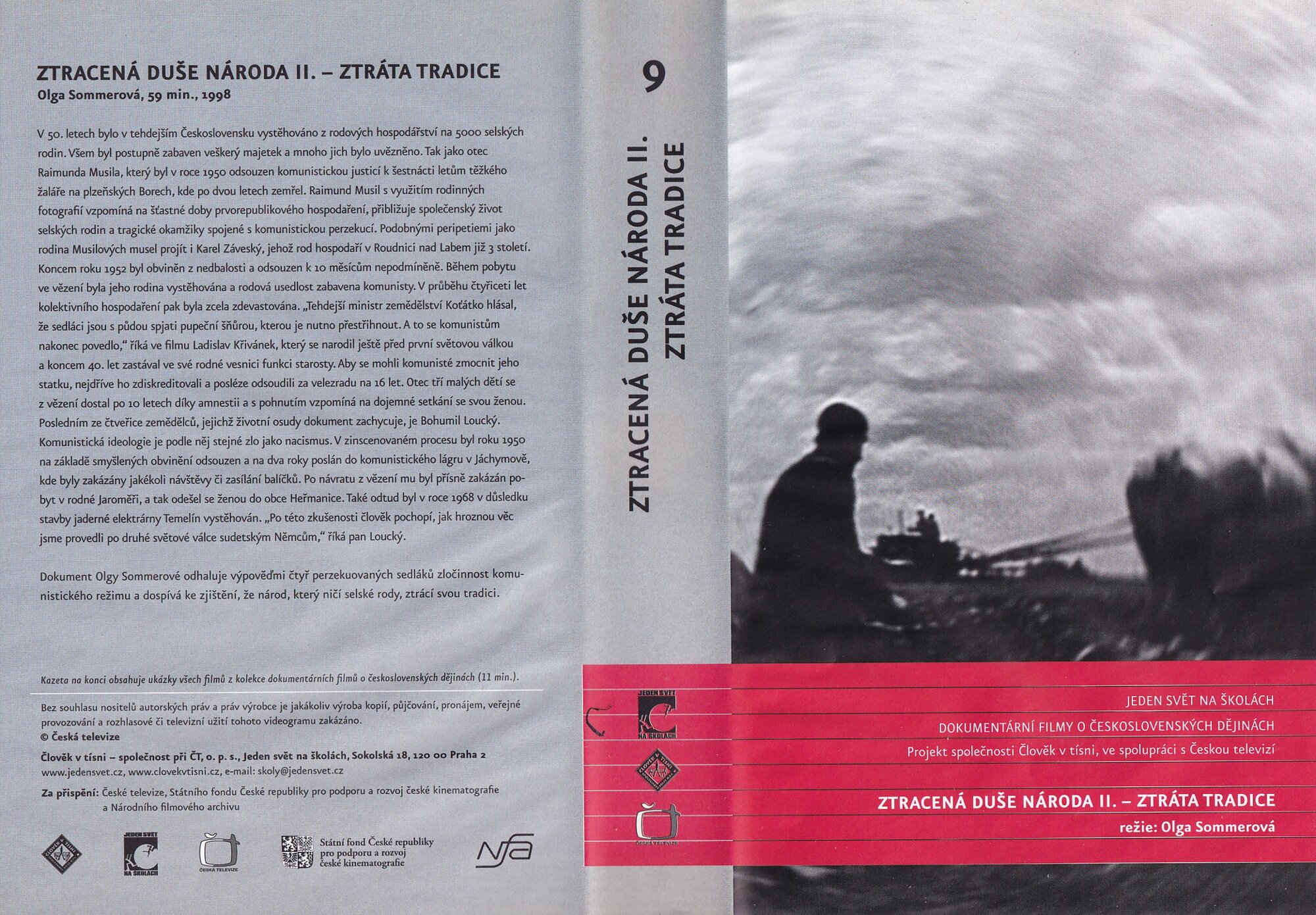 VHS „Ztracená duše národa II. – Ztráta tradice“ režisérky Olgy Sommerové z roku 1998 dokumentuje osudy sedláckých rodin perzekvovaných komunistickým režimem. Prostřednictvím osobních svědectví a archivních záběrů popisuje nucené vystěhování, ztrátu majetku a násilnou kolektivizaci, která přetrhala mnohagenerační tradice. Tento nosič je mementem totalitní zvůle a jejích dopadů na český venkov.