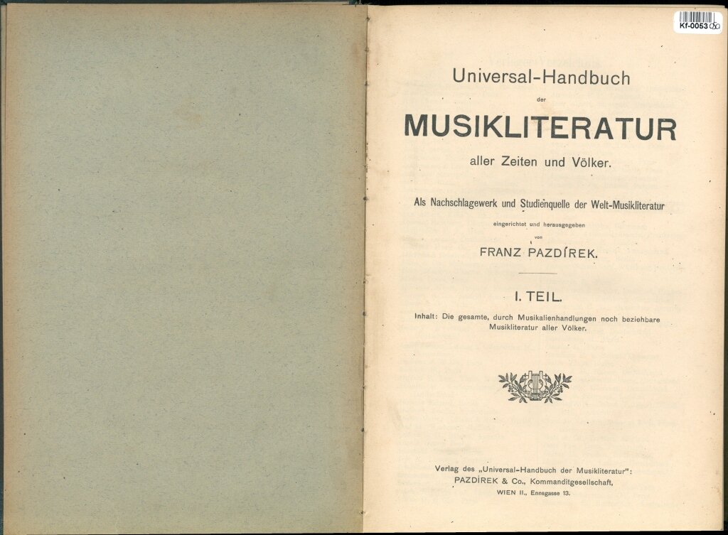 Universal-Handbuch der Muzikliteratur aller Zeiten und Völker