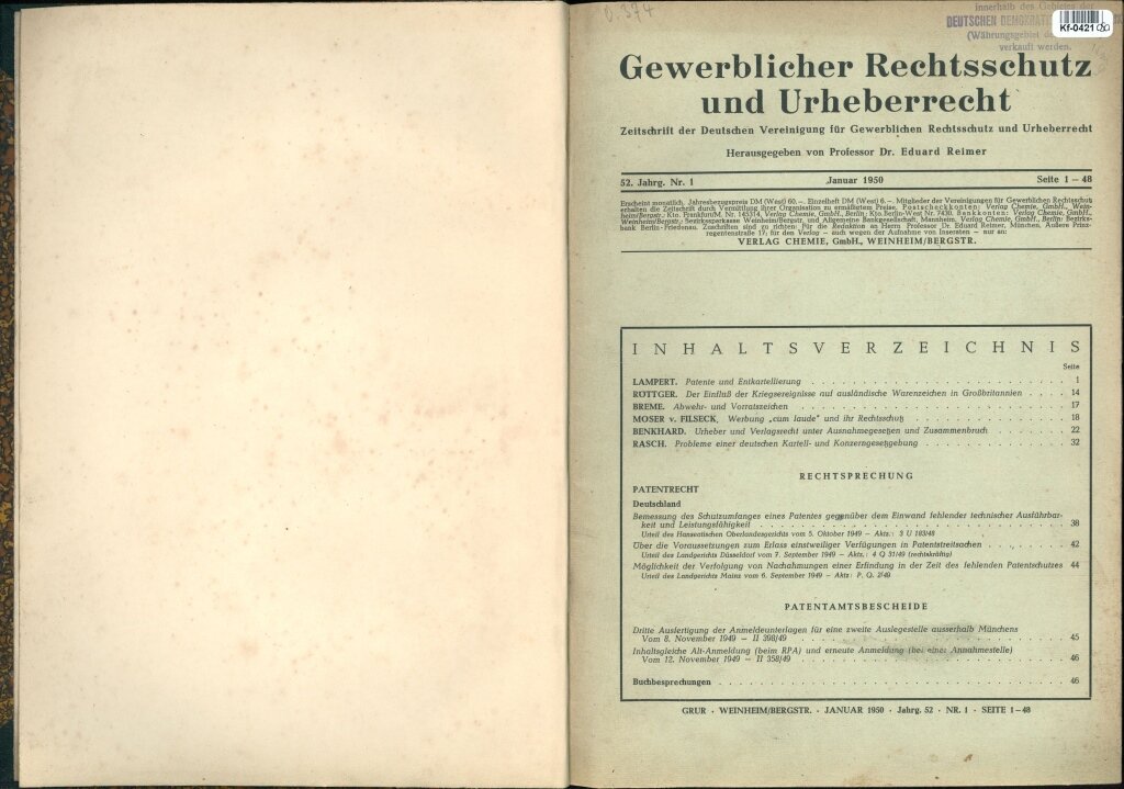 Gewerblicher Rechtsschutz und Urheberrecht