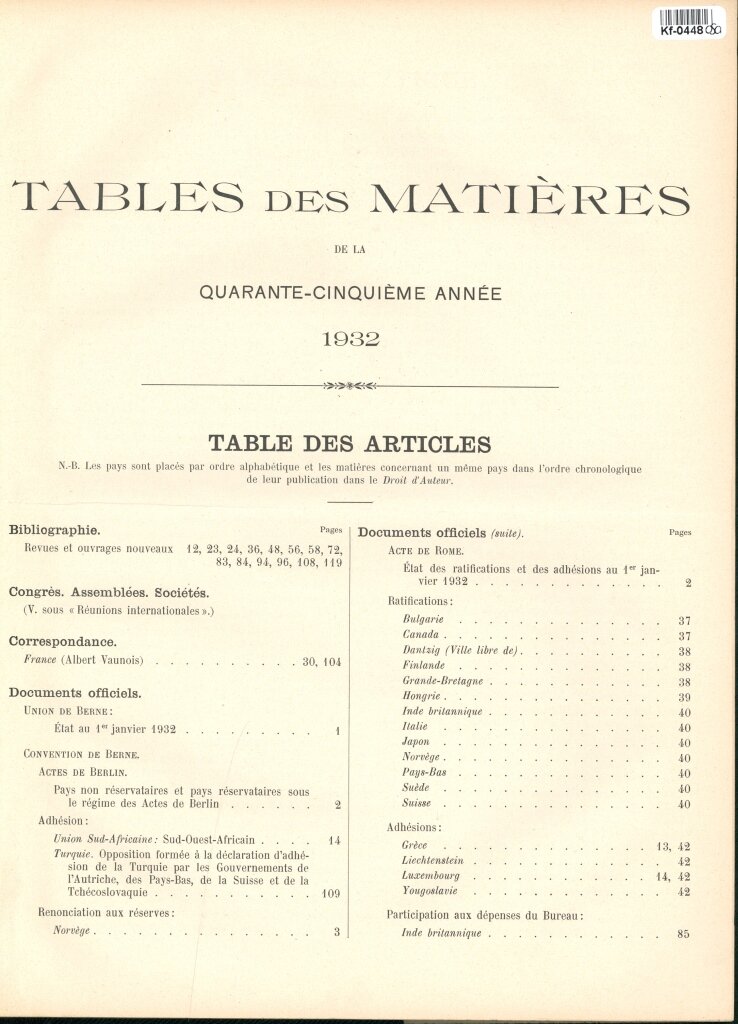 Tables des matieres