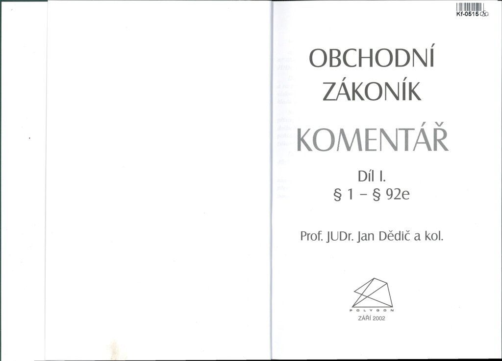 Obchodní zákoník - komentář I.