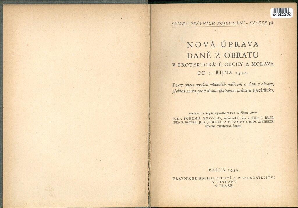 Nová úprava daně z obratu v protektorátě Čechy a Morava od I. října 1940