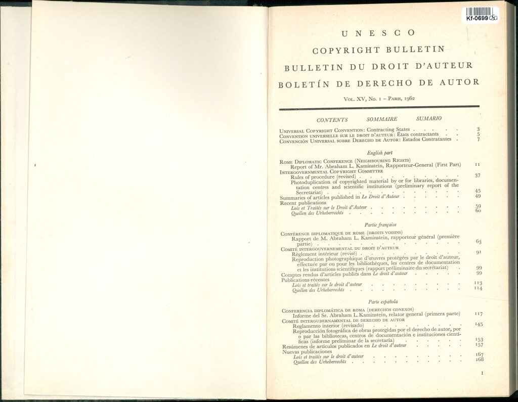 UNESCO COPYRIGHT BULLETIN BULLETIN DU DROIT D'AUTEUR BOLETÍN DE DERECHO DE AUTOR
