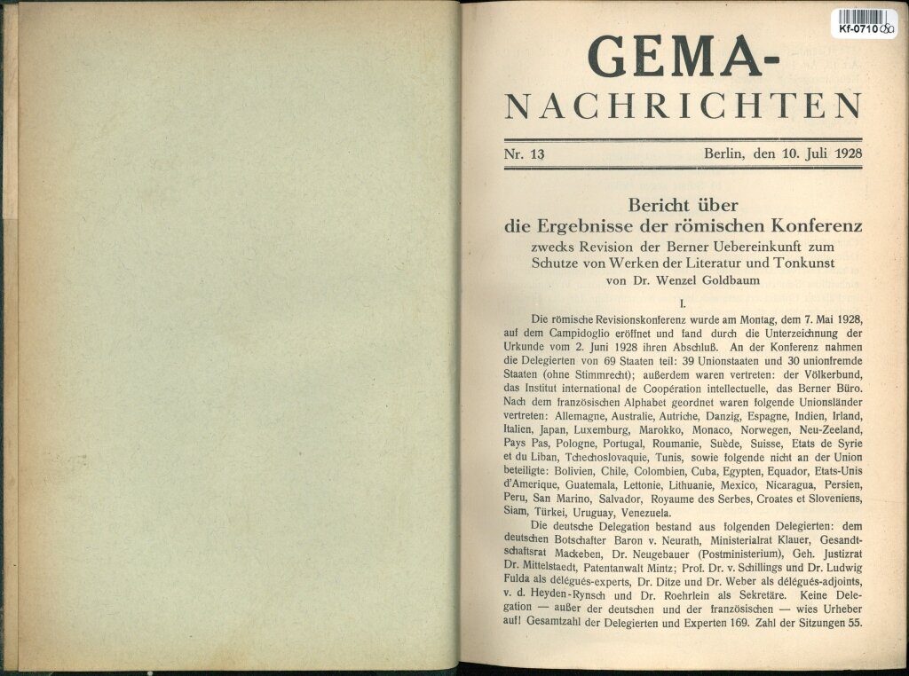 GEMA - NACHRICHTEN - Bericht über die Ergebnisse der römischen Konferenz