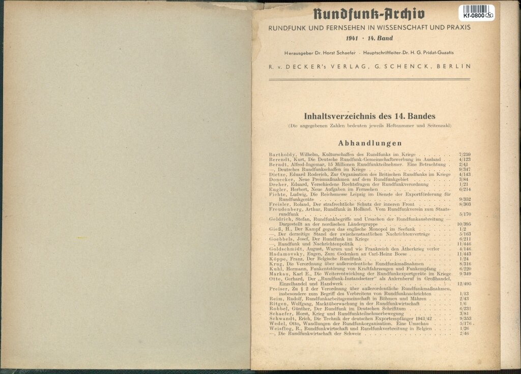 RUNDFUNK ARCHIV - Rundfunk und fernsehen in Wissenschaft und praxis - XIV. Band