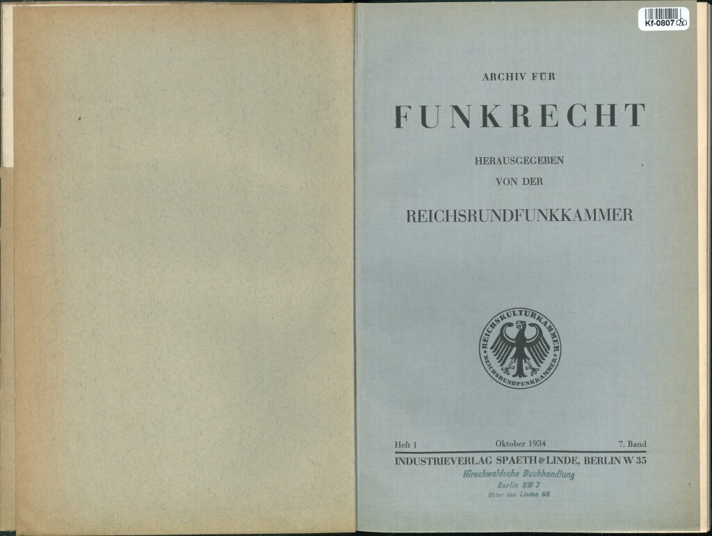 Archif für Funkrecht - Herausgegeben von der Reichsrundfunkkammer