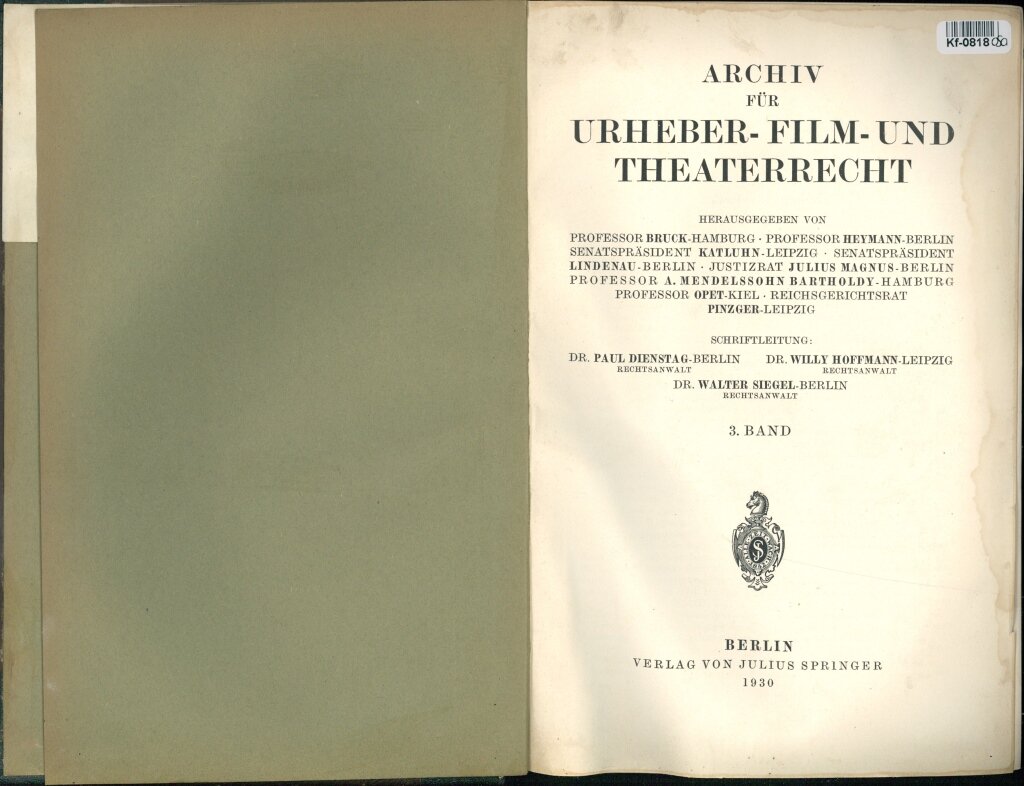 Archiv für Urheber - Film - und Theaterrecht - 3. Band