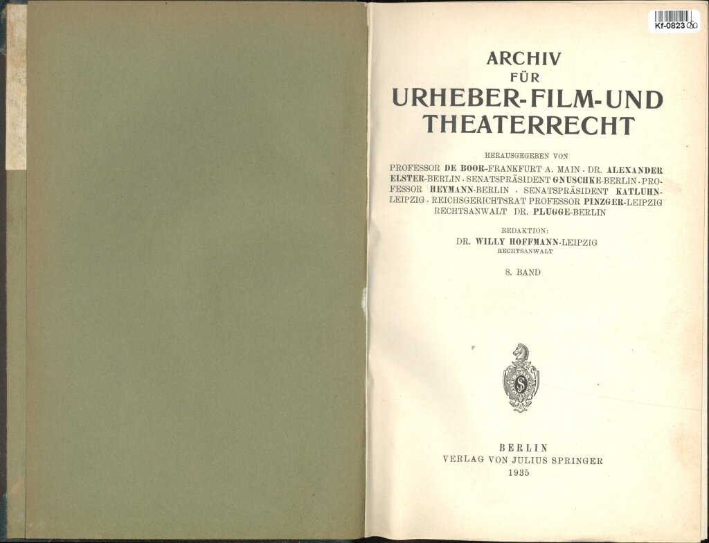 Archiv für Urheber - Film - und Theaterrecht - 8. Band