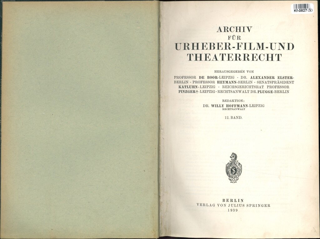 Archiv für Urheber - Film - und Theaterrecht - 12. Band