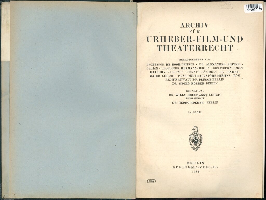 Archiv für Urheber - Film - und Theaterrecht - 15. Band