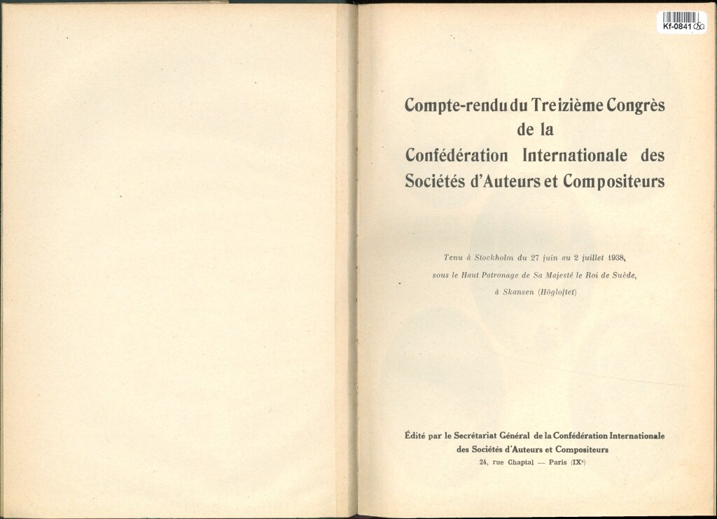 Compte-rendu du Treizieme Congrés de la Confédération Internationale des Sociétés ďAuteurs et Compositeurs