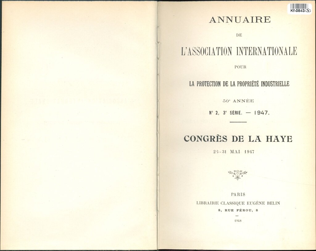 Annuaire de l'Association Internationale pour la Protection de la Propriété Industrielle - Congres de la Haye