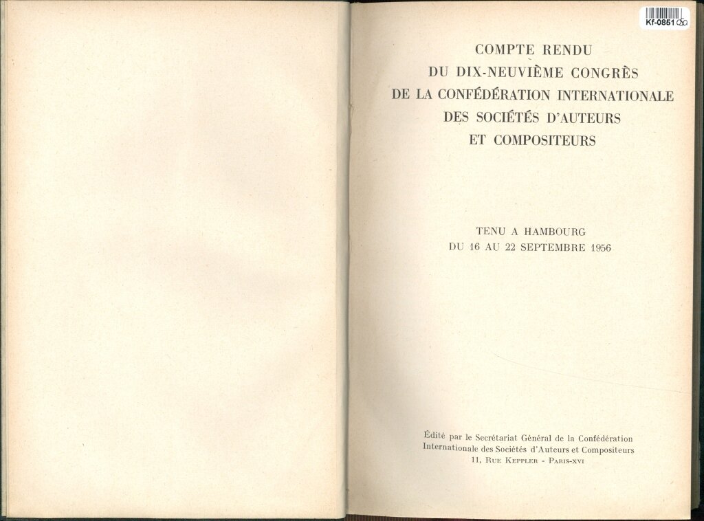 Compte-rendu du Dix - Neuvieme Congres de la Confédération Internationale des Sociétés ďAuteurs et Compositeurs