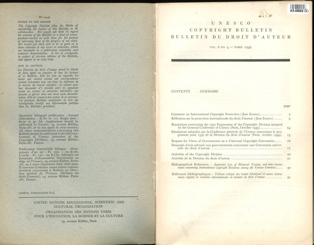 UNESCO COPYRIGHT BULLETIN BULLETIN DU DROIT D'AUTEUR - VOL. II.