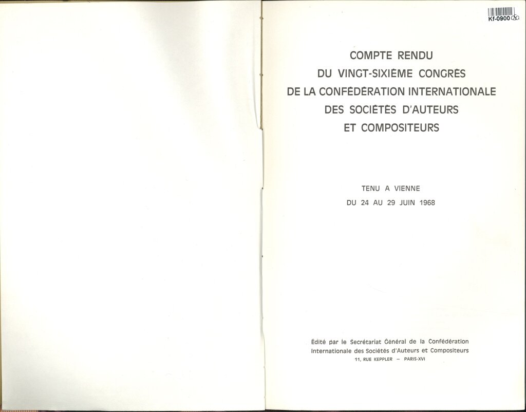 COMPTE RENDU DU VINGT - SIXIEME CONGRES DE LA CONFÉDÉRATION INTERNATIONALE DES SOCIÉTÉS D'AUTEURS ET COMPOSITEURS