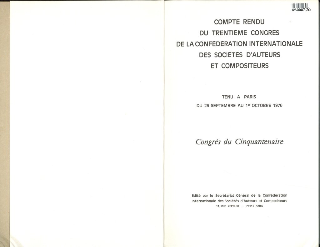 COMPTE RENDU DU TRENTIEME CONGRES DE LA CONFÉDÉRATION INTERNATIONALE DES SOCIÉTÉS D'AUTEURS ET COMPOSITEURS